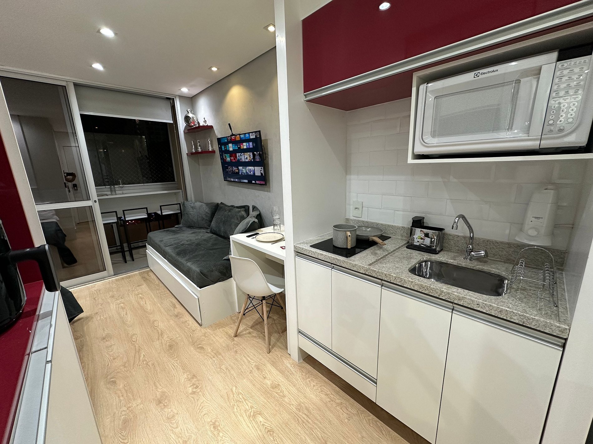 Apartamento completo com ar-condicionado, internet de alta velocidade, smart tv , fogão , geladeira, microondas, cafeteira , Air fryer , filtro da água , ducha higiênica, secador de cabelos , 1 cama de casal e 1 cama de solteiro , varanda com fechamento em vidro , bancada para refeições na varanda , vaga de garagem no prédio , portaria presencial 24h , Academia e piscina no rooftop , lavanderia paga com sistema de fichas . Excelente localização próximo hospital Sírio libanês , Av Paulista.