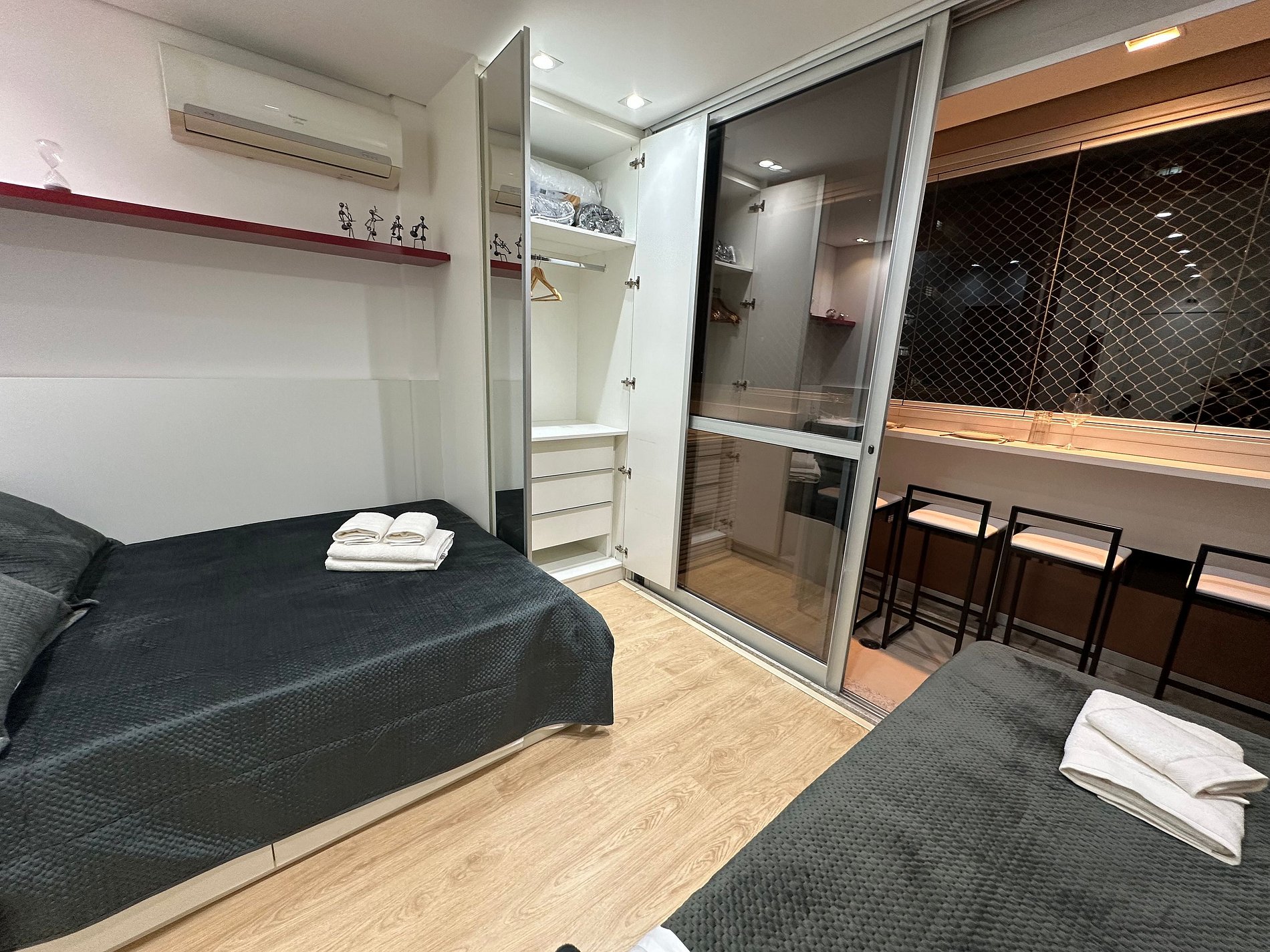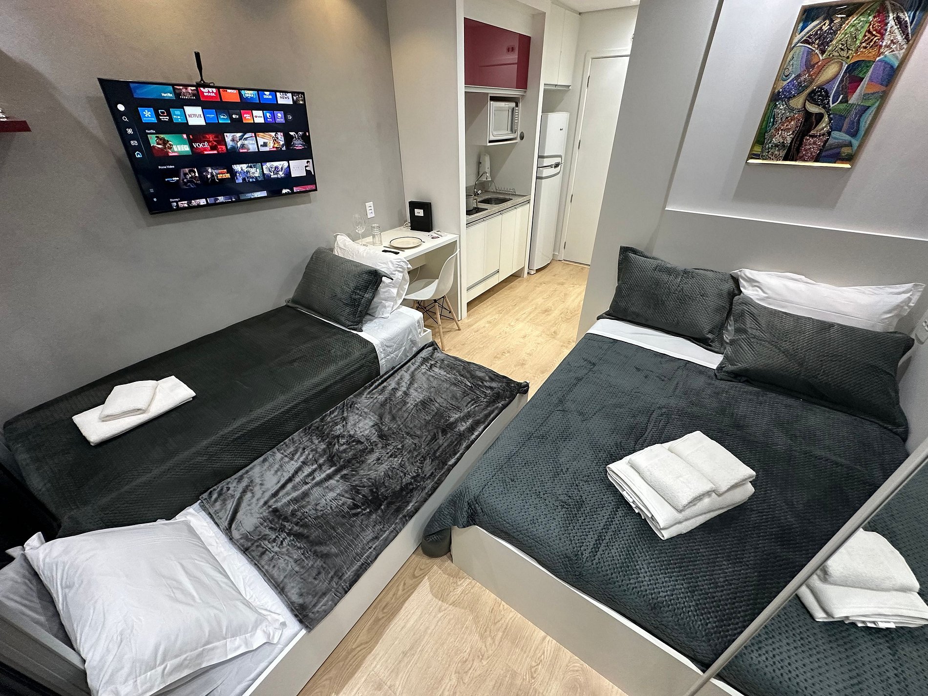 Apartamento completo com ar-condicionado, internet de alta velocidade, smart tv , fogão , geladeira, microondas, cafeteira , Air fryer , filtro da água , ducha higiênica, secador de cabelos , 1 cama de casal e 2 camas de solteiro , varanda com fechamento em vidro , bancada para refeições na varanda , vaga de garagem no prédio , portaria presencial 24h , Academia e piscina no rooftop , lavanderia paga com sistema de fichas . Excelente localização próximo hospital Sírio libanês , Av Paulista.