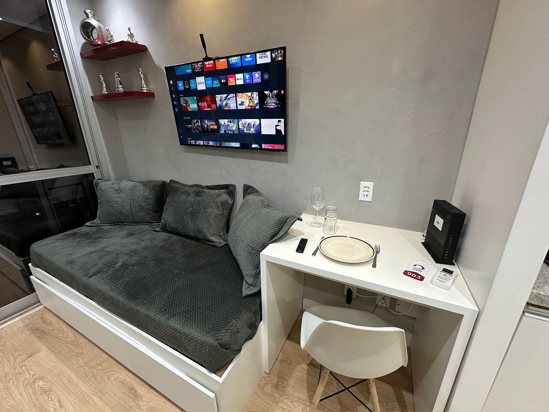 Apartamento completo com ar-condicionado, internet de alta velocidade, smart tv , fogão , geladeira, microondas, cafeteira , Air fryer , filtro da água , ducha higiênica, secador de cabelos , 1 cama de casal e 2 camas de solteiro , varanda com fechamento em vidro , bancada para refeições na varanda , vaga de garagem no prédio , portaria presencial 24h , Academia e piscina no rooftop , lavanderia paga com sistema de fichas . Excelente localização próximo hospital Sírio libanês , Av Paulista.
