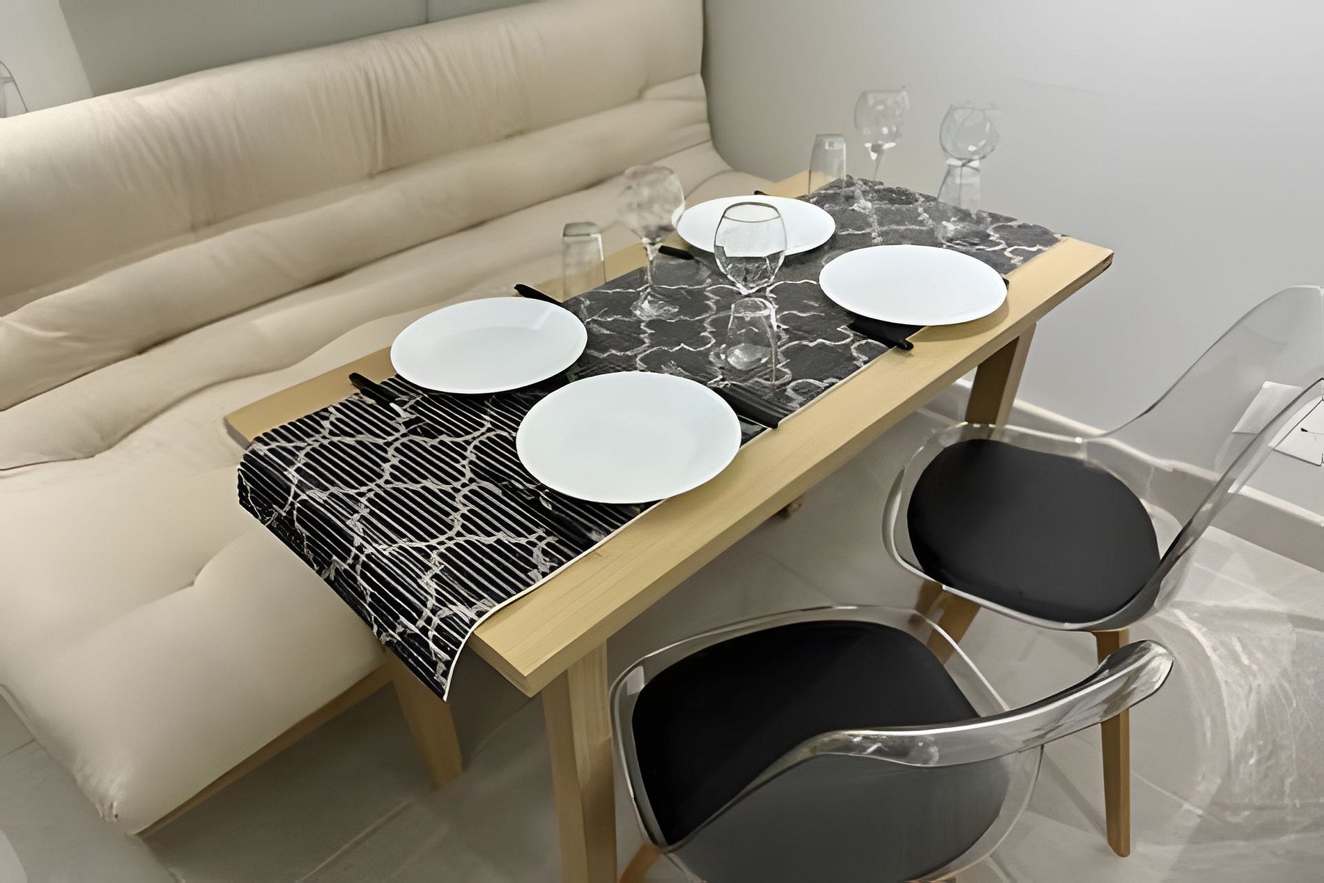 Mesa con toma de corriente eléctrica