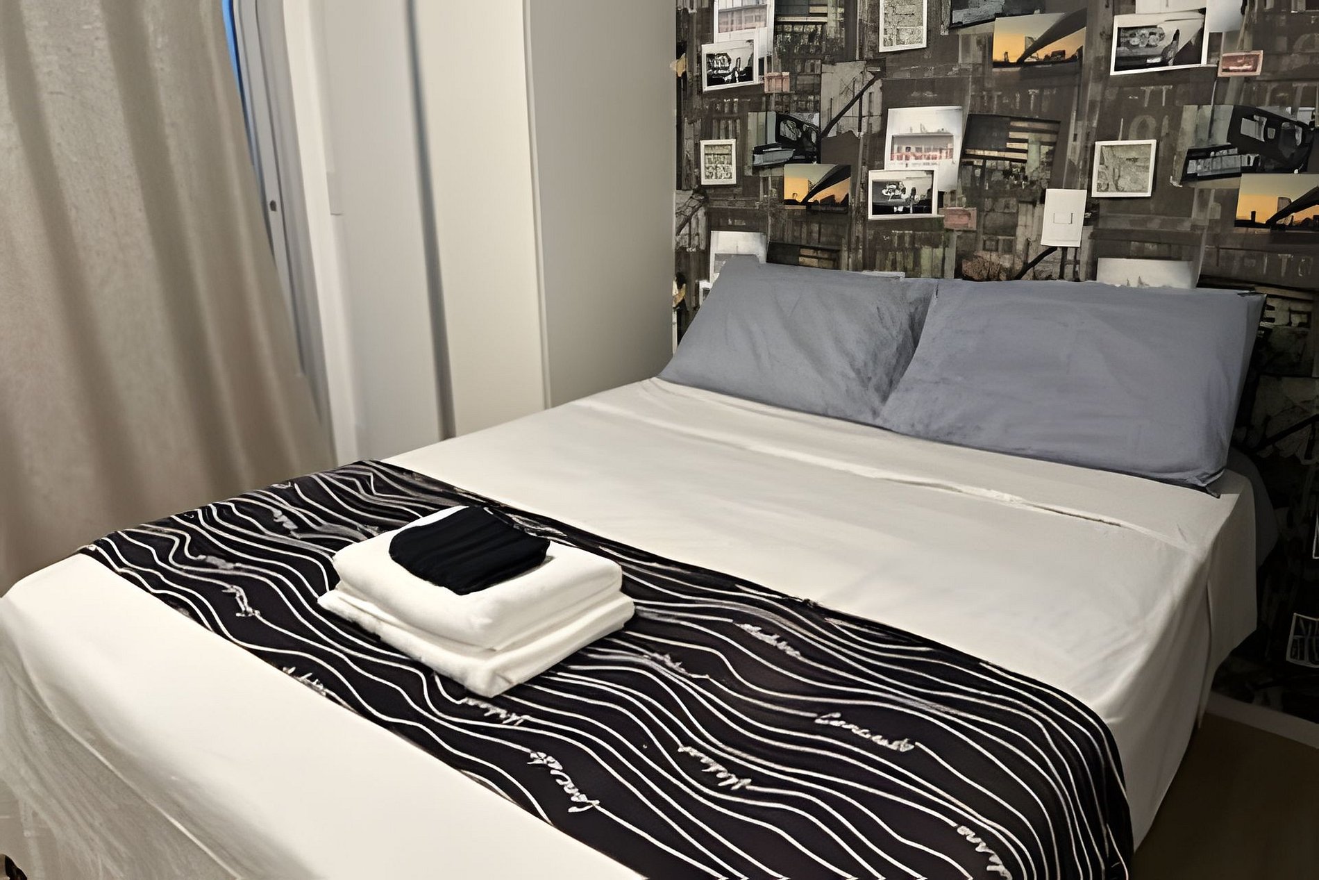O apartamento está equipado com ar-condicionado, Smart tv, internet Wi-Fi, secador de cabelos, cozinha equipada com utensílios novos, cafeteira, micro-ondas, geladeira, fogão .Varanda fechada com vidro na sacada e cortina black out. Os hóspedes poderão usufruir da piscina, academia e lavanderia ( R$ 10,00 o ciclo para usar máquinas lava e seca ) com ferro e tábua de passar. O prédio é novo com portaria e segurança 24hrs, linda área de lazer com quadros, grafites, ótimos espaços para tirar fotos