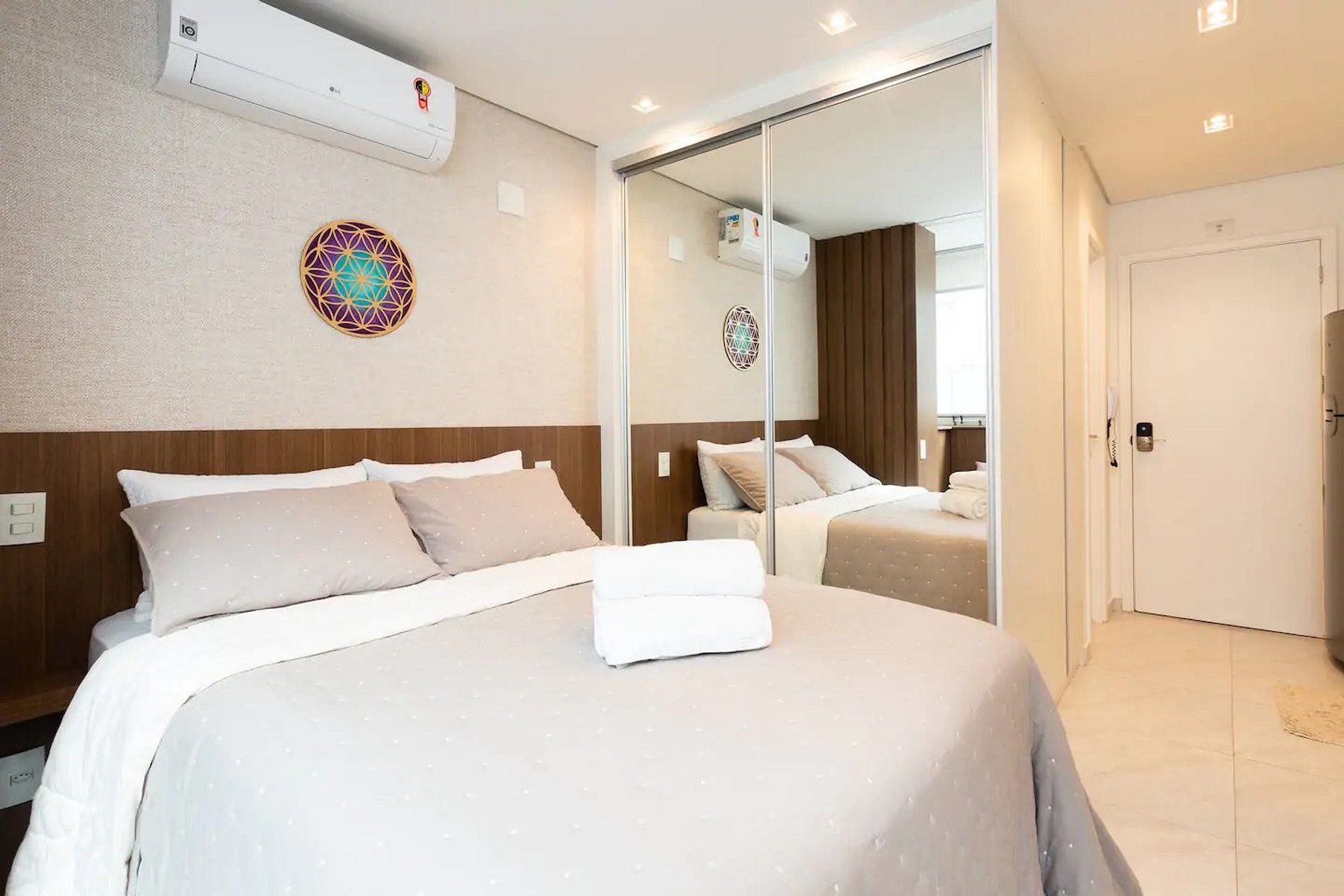 O apartamento está equipado com ar-condicionado, Smart tv, internet Wi-Fi, secador de cabelos, cozinha equipada com utensílios novos, cafeteira, micro-ondas, geladeira, fogão, tudo novo! Oferecemos roupa de cama e banho, toalha extra para piscina, sabonete liquido, shampoo, condicionador e para começar bem o seu dia temos cortesia de pó de café e açúcar.