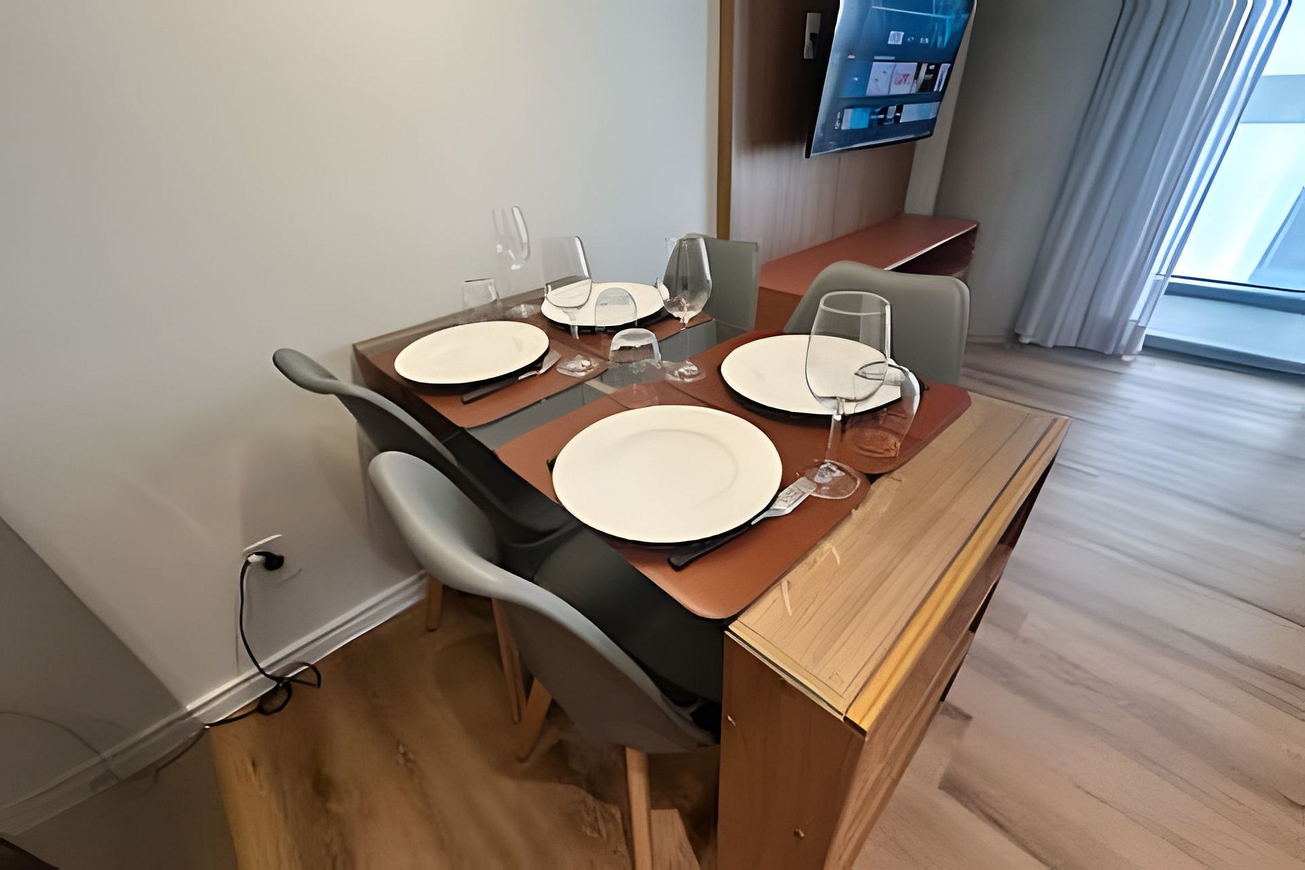 Mesa com tomada elétrica